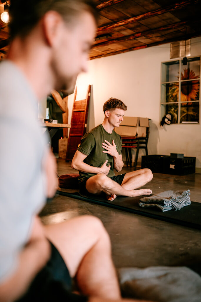 OERZUCHT is een begeleide groepssessie waarin je via de verbonden ademhaling spanning loslaat en je zenuwstelsel tot rust brengt. Geen zweverigheid – gewoon op een mat liggen, ademen op een manier die je nog nooit hebt gedaan en voelen wat dat met je doet.